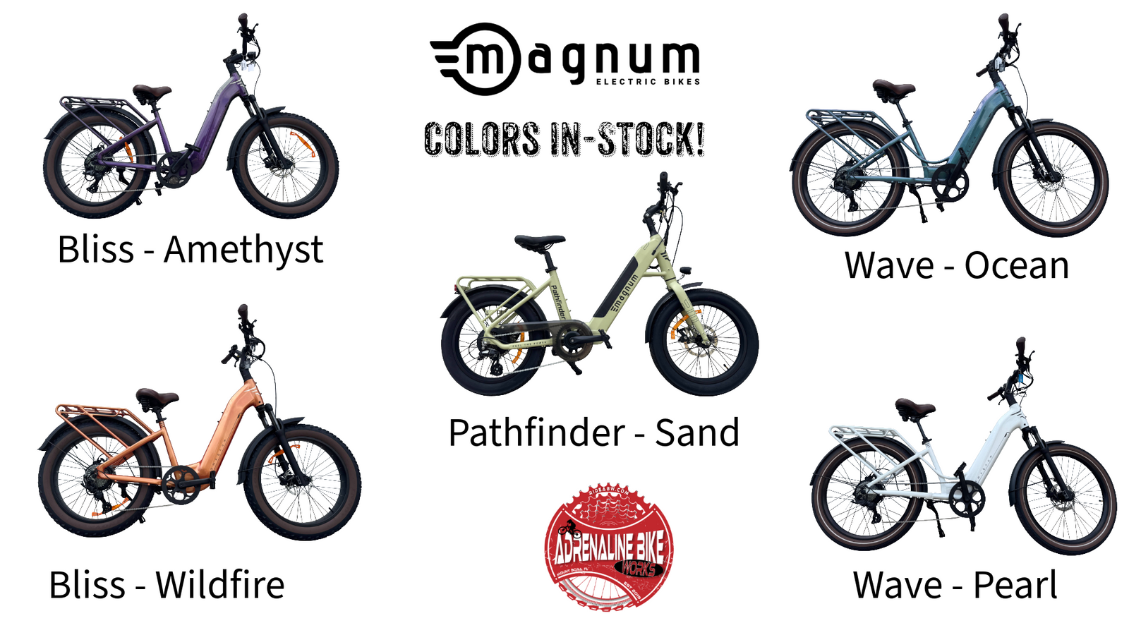Magnum’s lineup of affordable, high-quality electric bicycles is now available in-store at Adrenaline Bike Works in Mount Dora! These sleek, durable e-bikes are built for every kind of rider—from commuters and weekend cruisers to trail-ready adventurers.